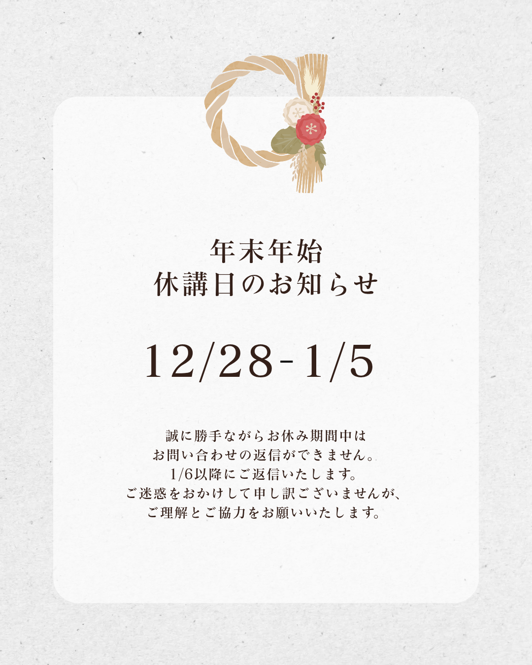新年は1/6(火)スタートです(*^_^*)